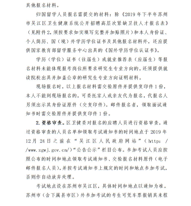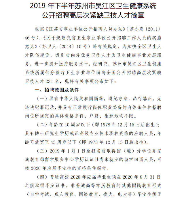 附件1.2019年下半年苏州市吴江区卫生健康系统公开招聘高层次紧缺卫技人才职位简介表.xls