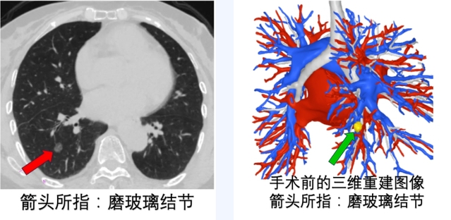一月前,患者体检发现肺部磨玻璃结节,结节大小达11mm。家属慕名到苏州九院请施舜缤主任就诊。施舜缤主任将患者收住入院,并进行了充分的鉴别诊断和术前准备。