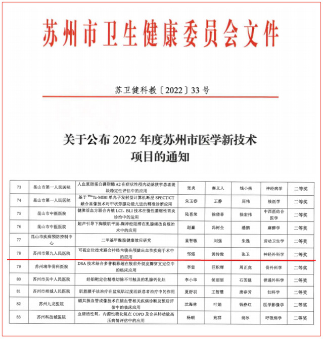 苏州九院神经外科的“可视定位技术联合神经内镜在颅脑出血性疾病手术中的应用”获得二等奖